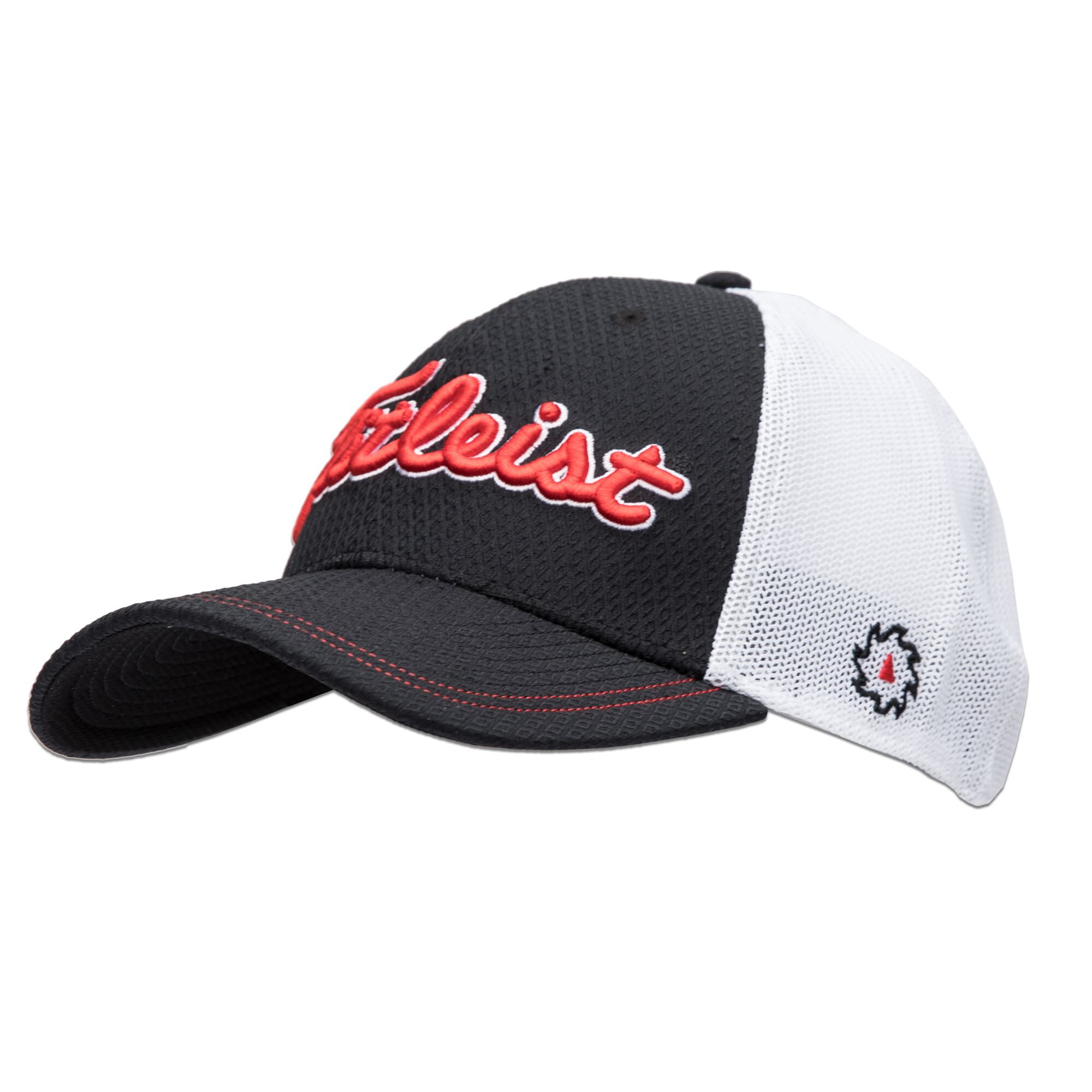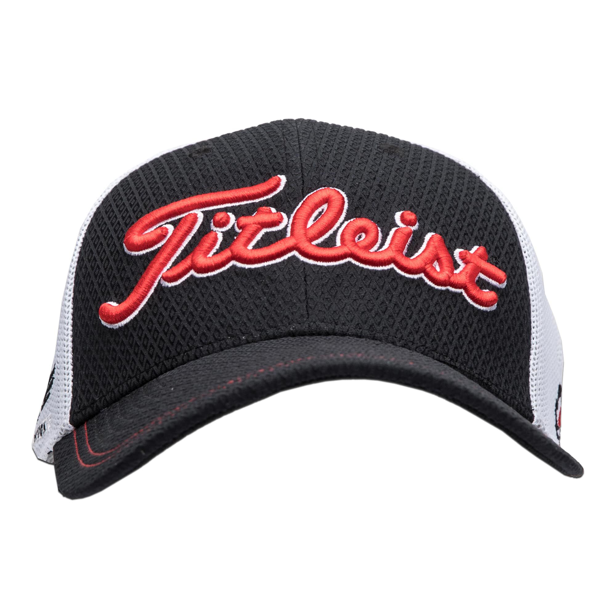 - Embroidery: raised Titleist script on front in red w/ white trim, BV Wings logo on player's right in black, Delta Saw logo on player's left in black/red, Titleist script on back in black w/ red trim.