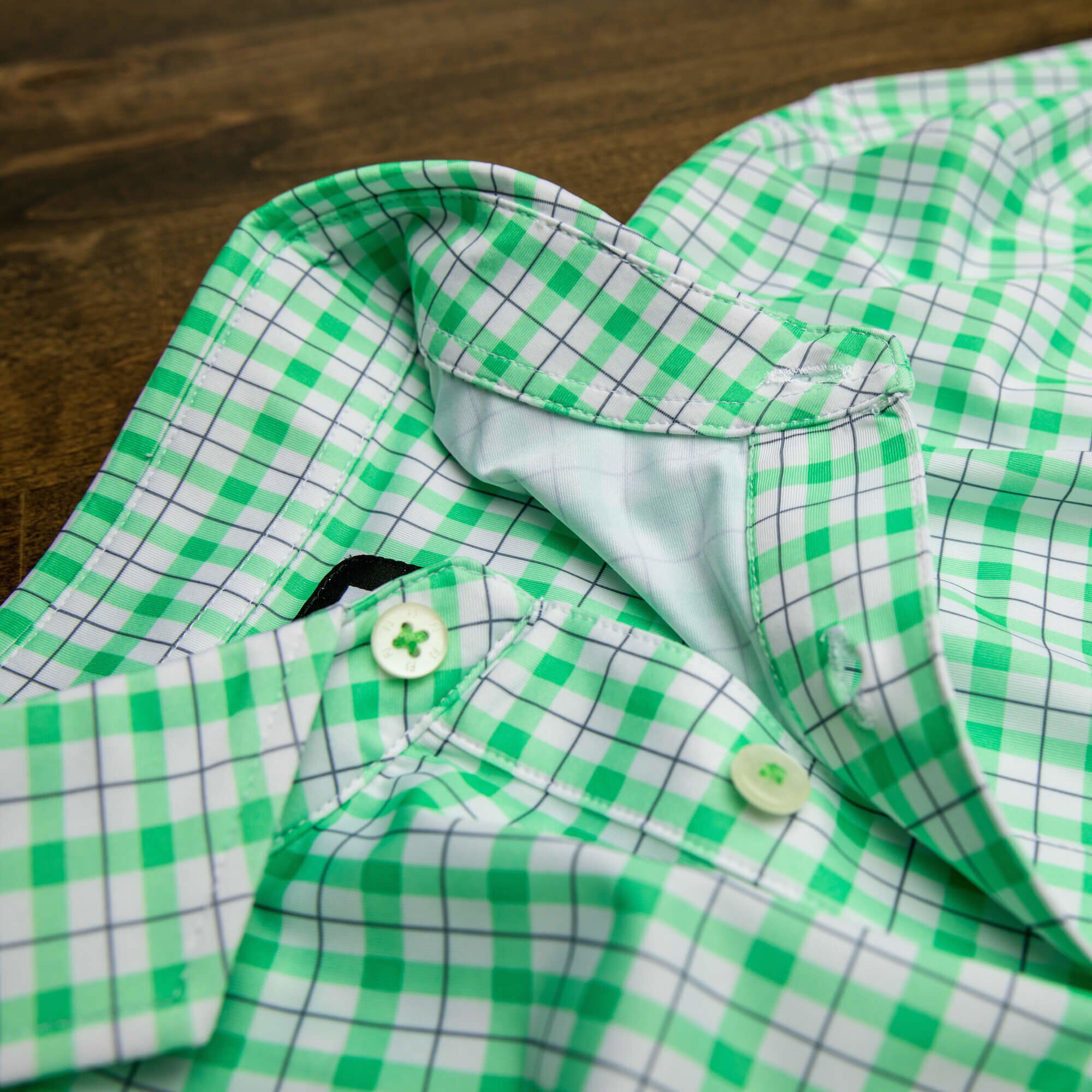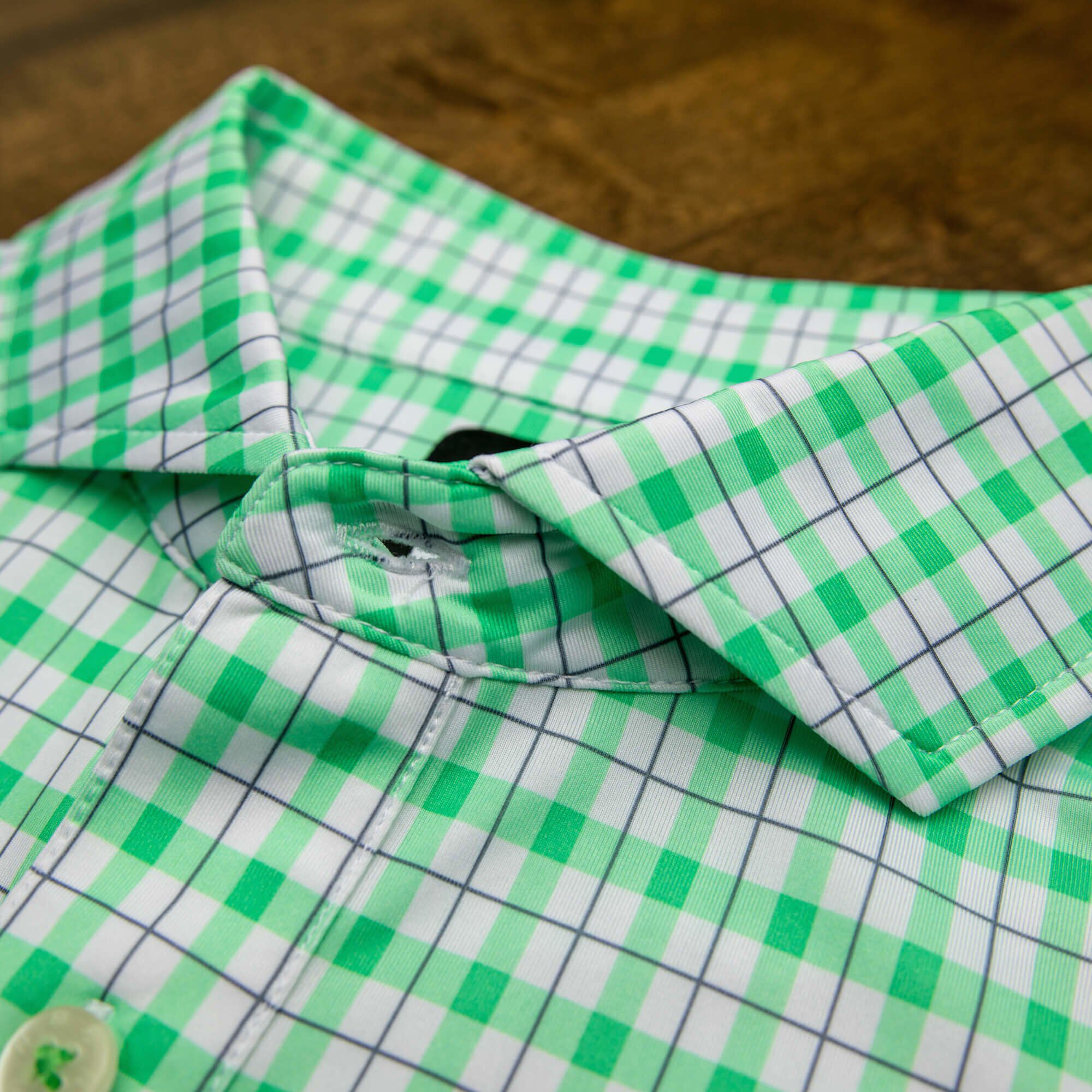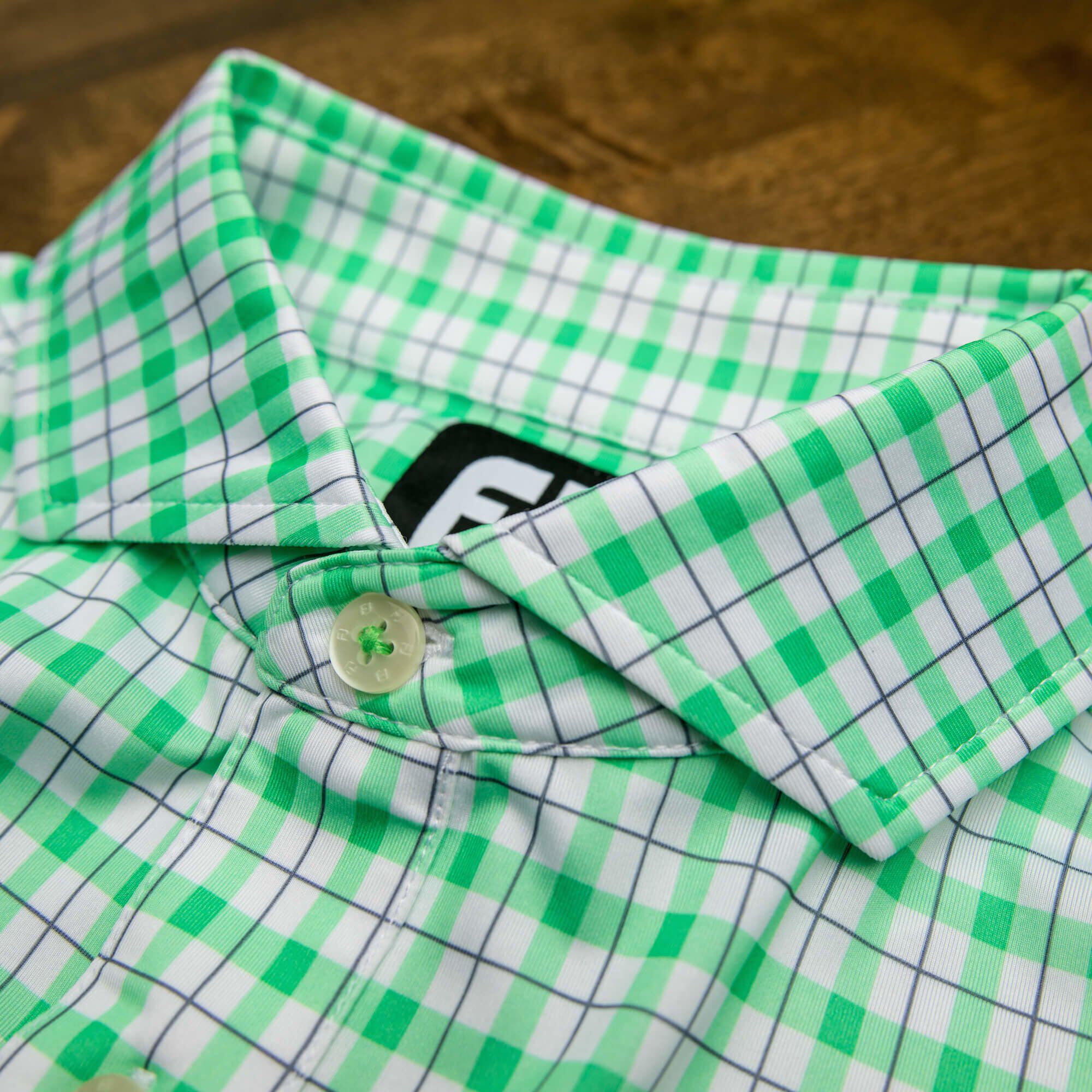 FJ Lisle Plaid Print w/ Self Collar - White + Green/Navy