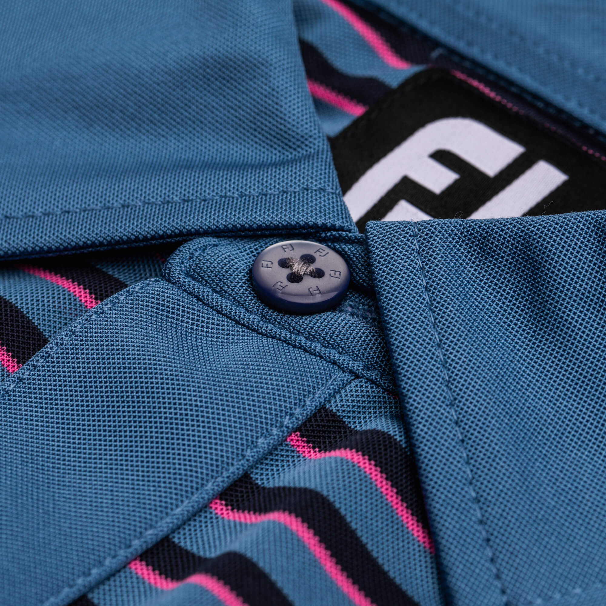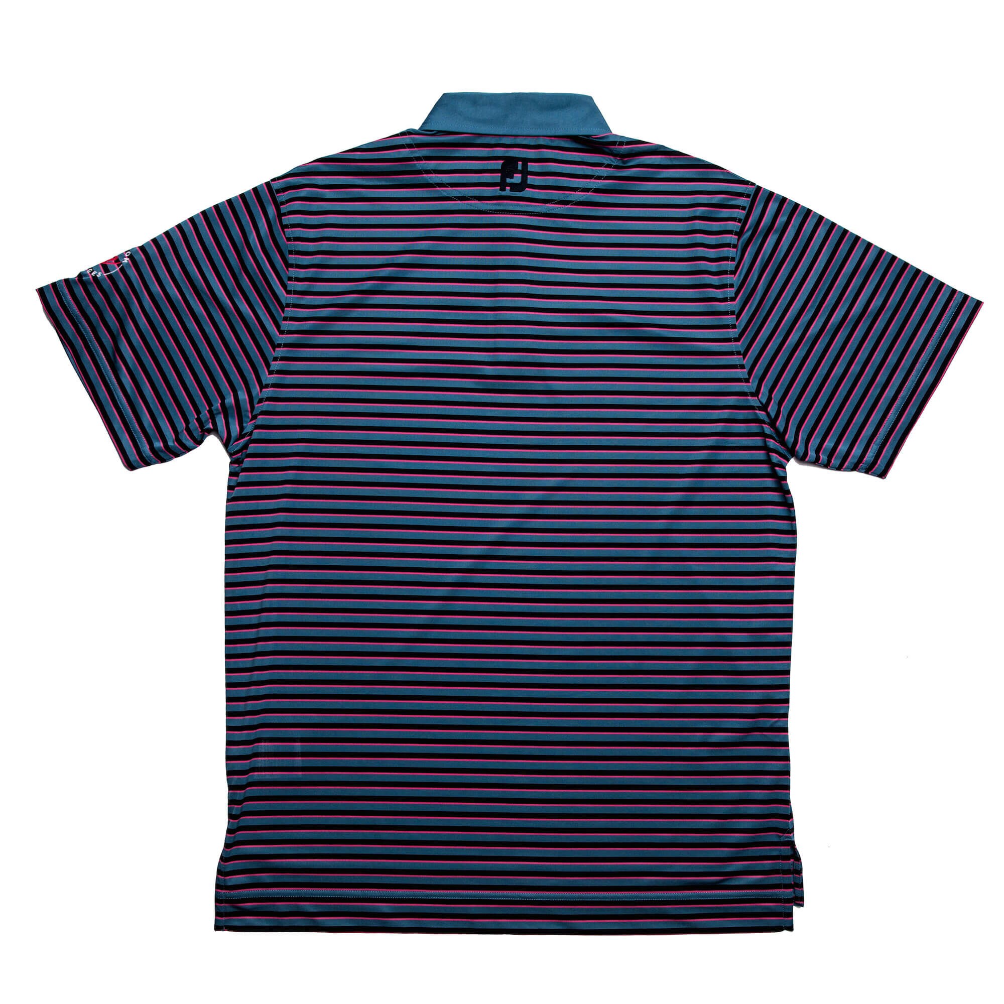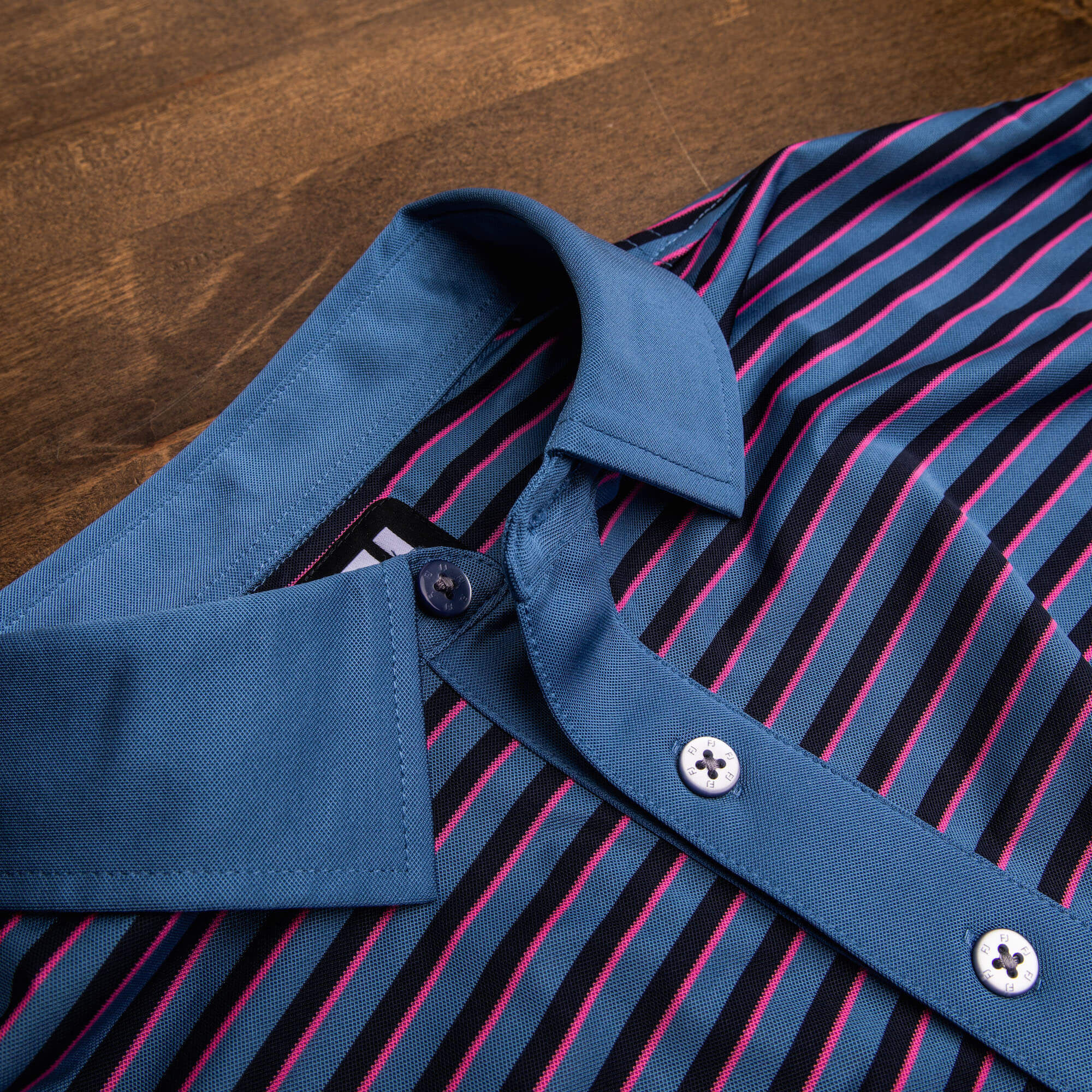 FJ Super Stretch Pique Multi Stripe w/ Self Collar - Slate + Navy/Island Pink
