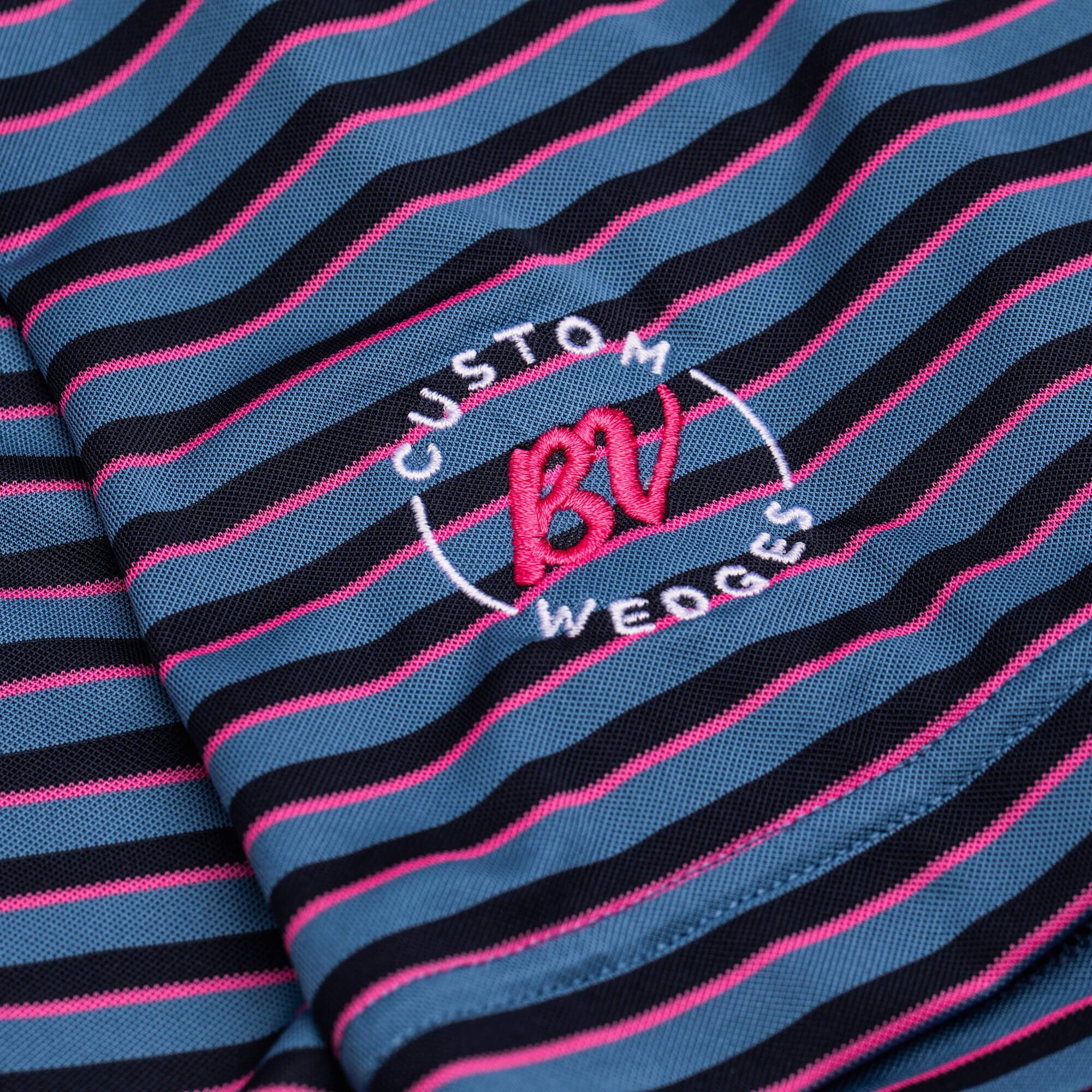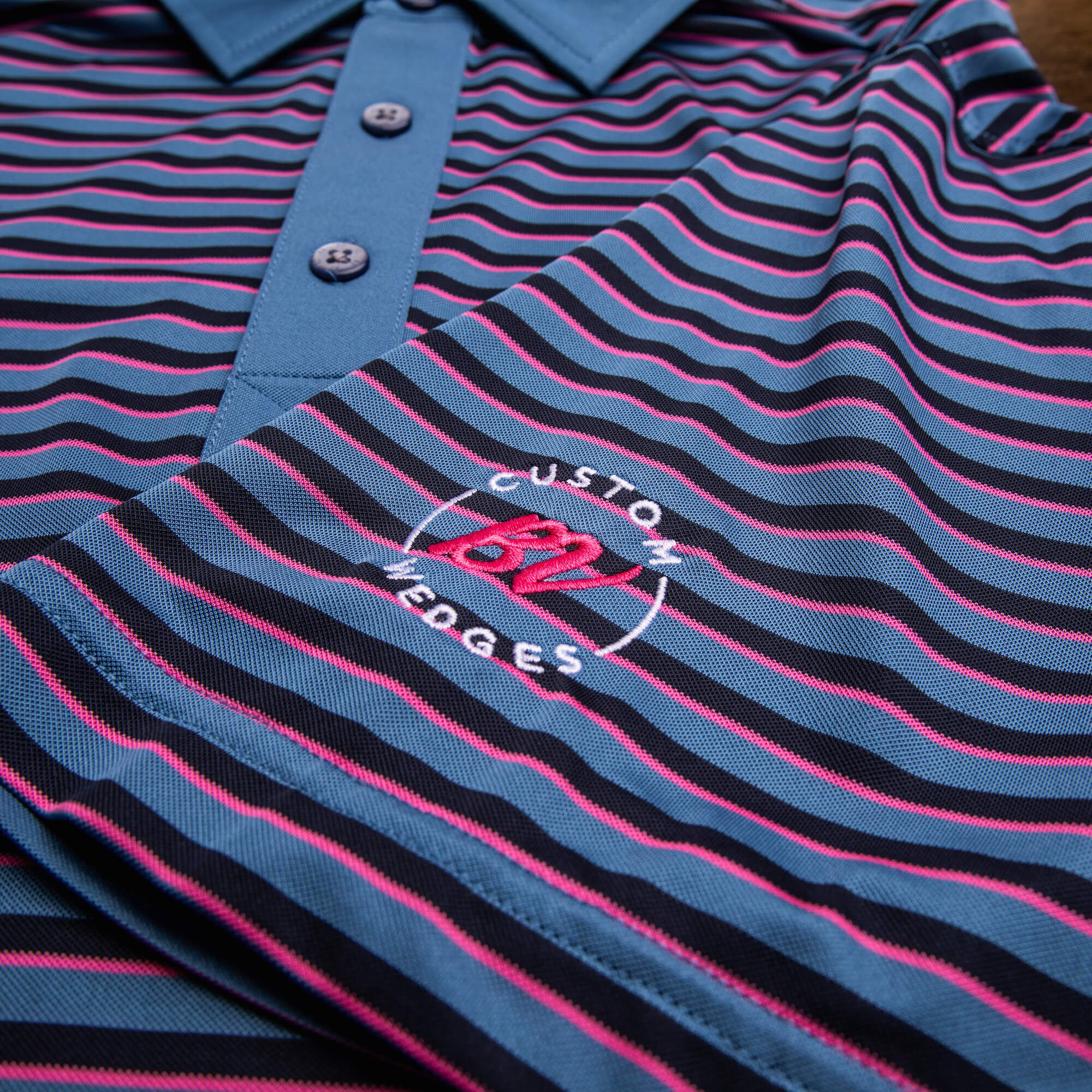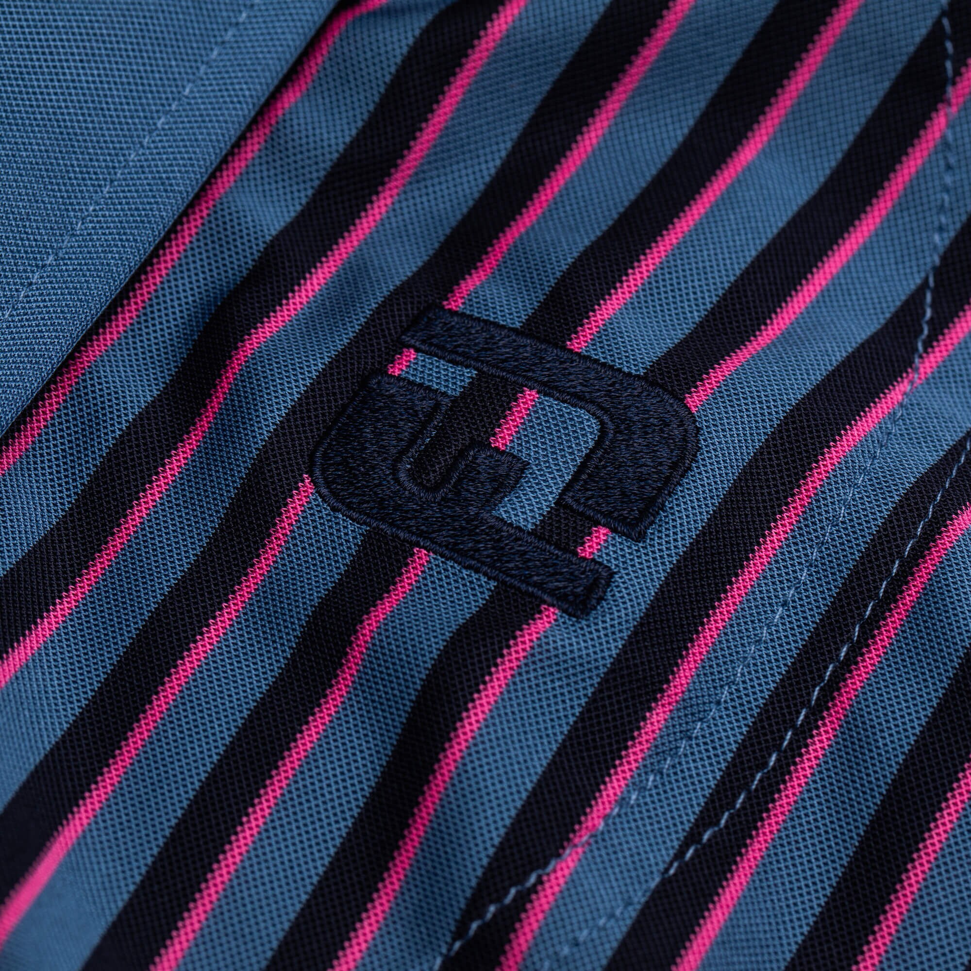 FJ Super Stretch Pique Multi Stripe w/ Self Collar - Slate + Navy/Island Pink