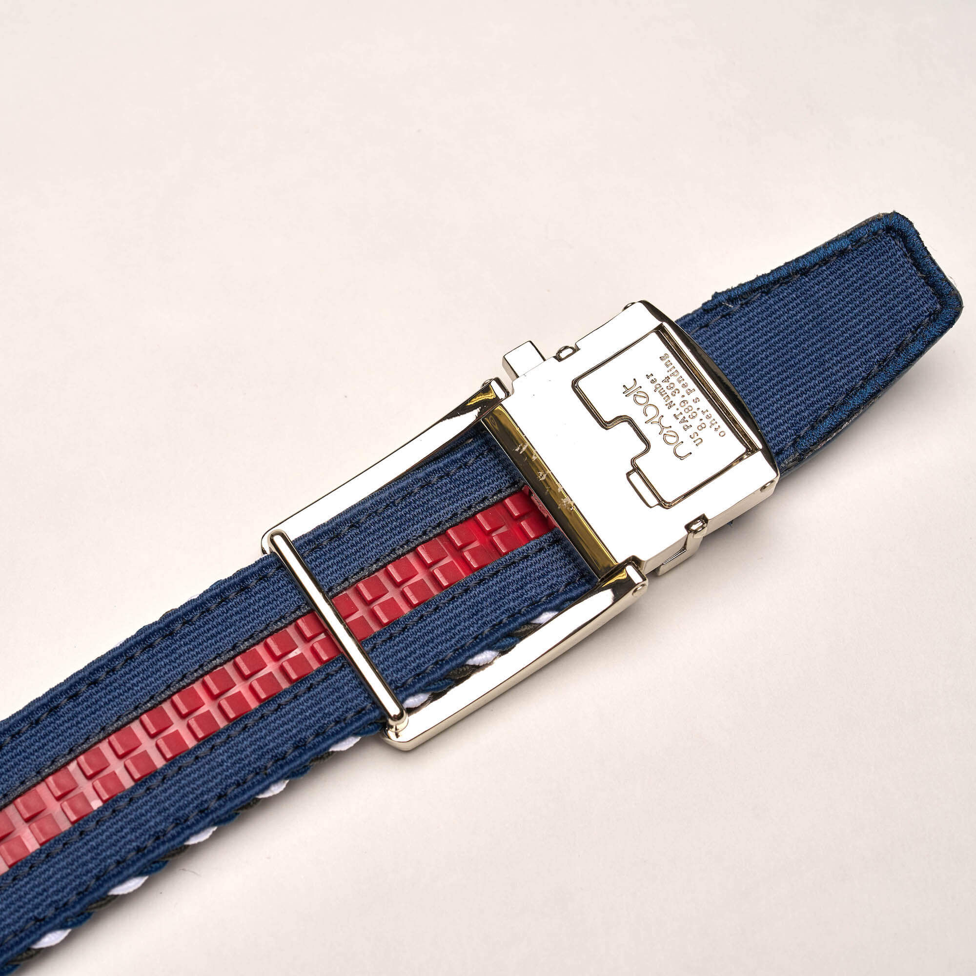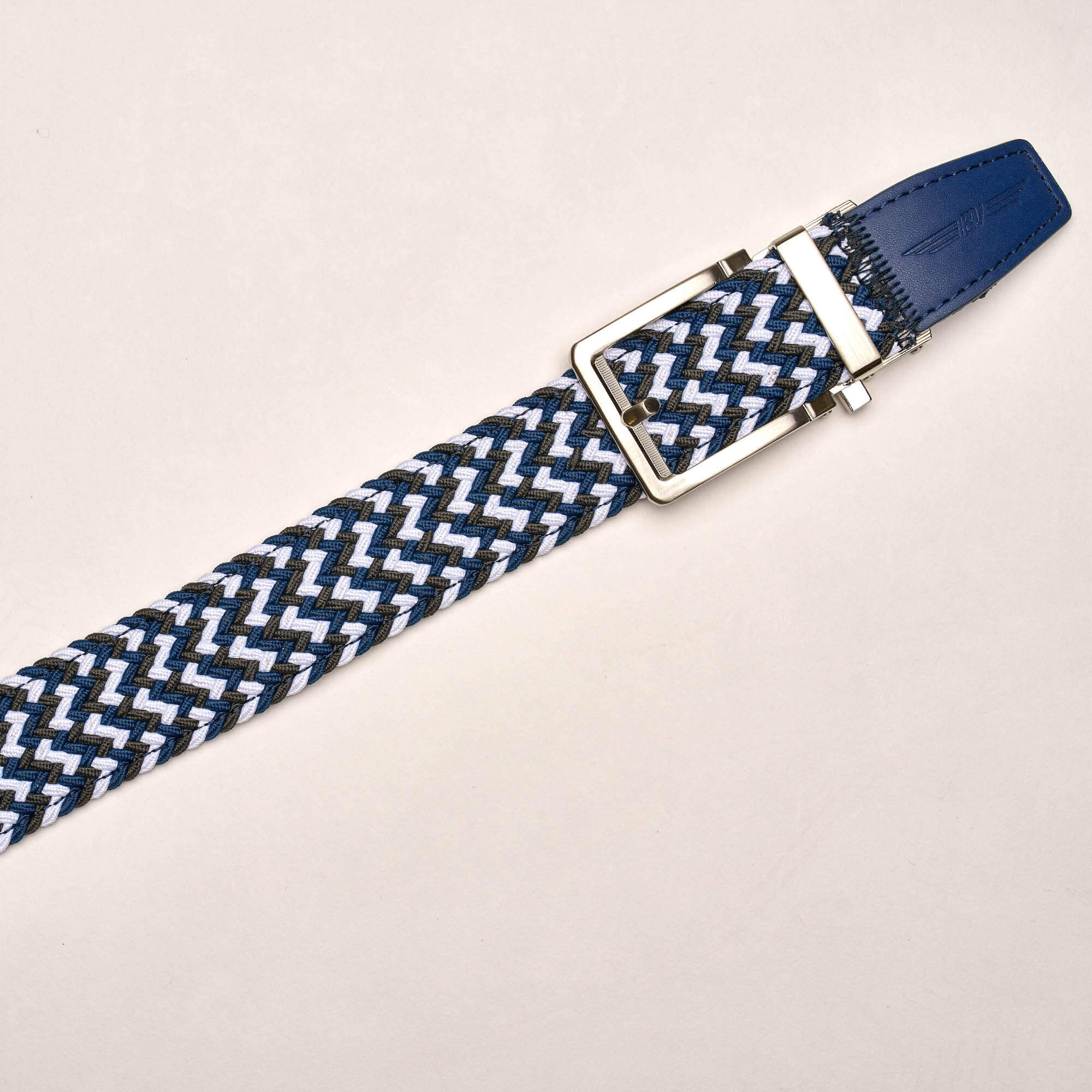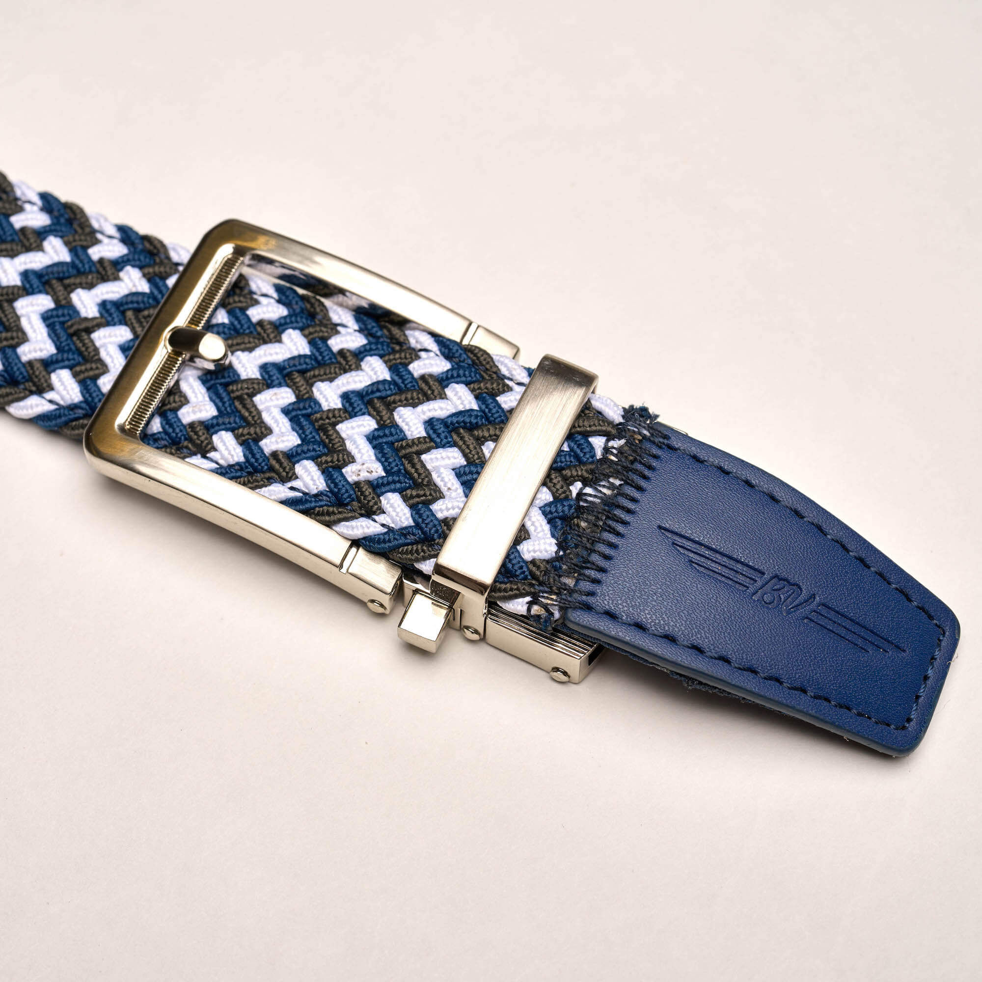 - BV Wings logo embossed on navy belt tip.